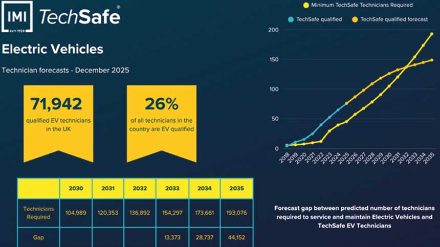 Emma Carrigy, head of research, policy and inclusion at the IMI, said: “The latest IMI TechSafe EV forecast suggests that the pace of training is misaligned with current and future demand, and is likely to fall short of what is needed to support the UK’s ZEV targets.